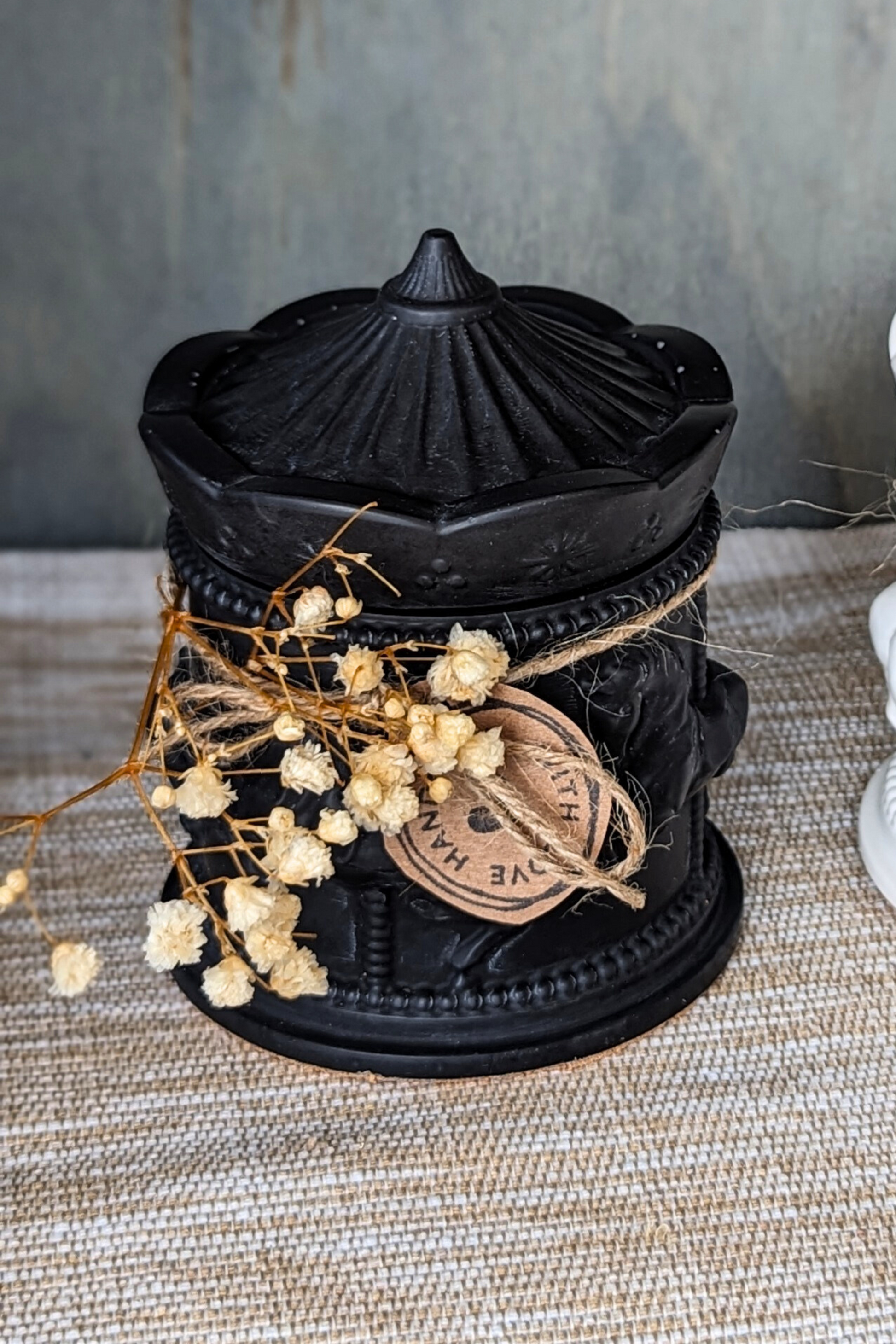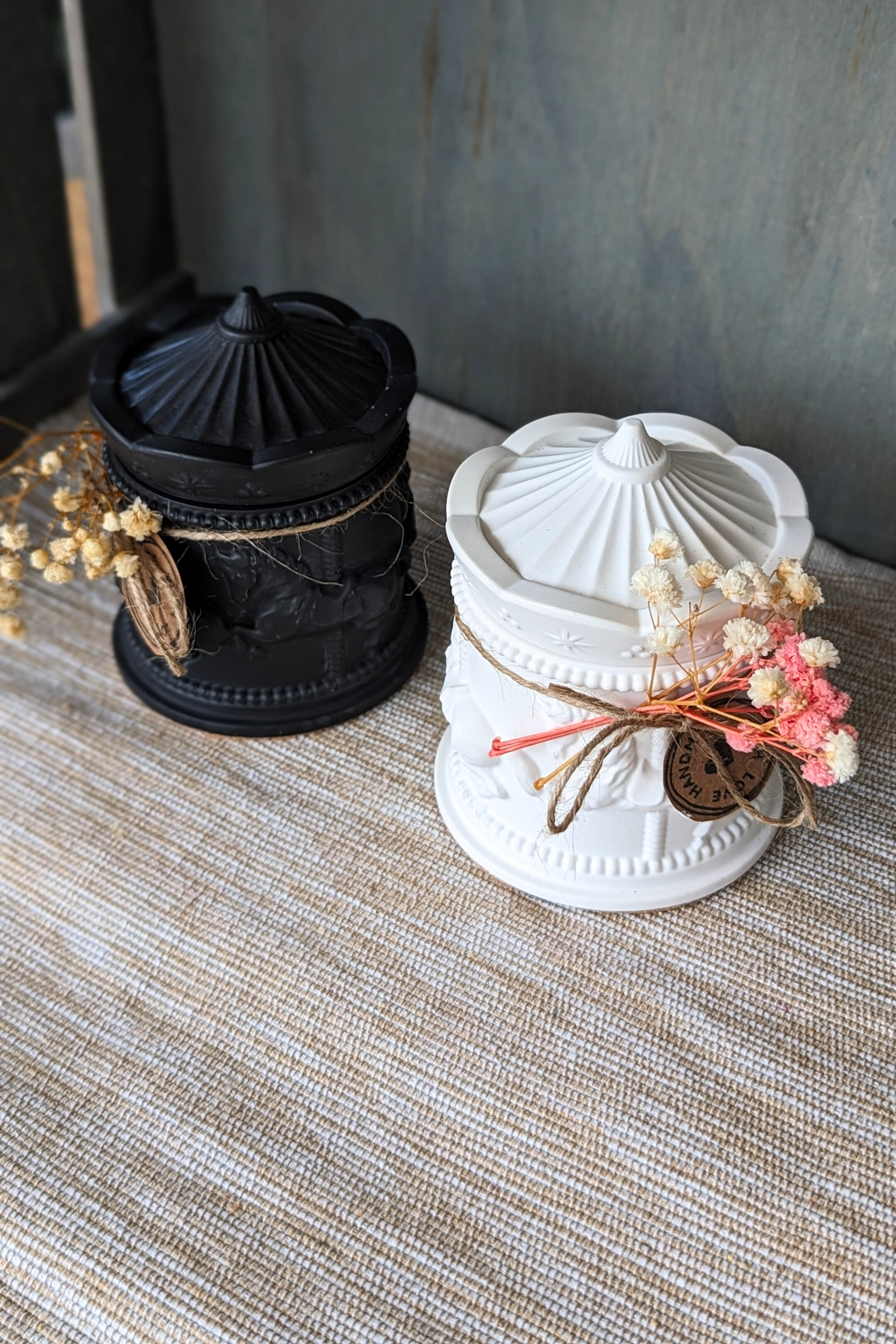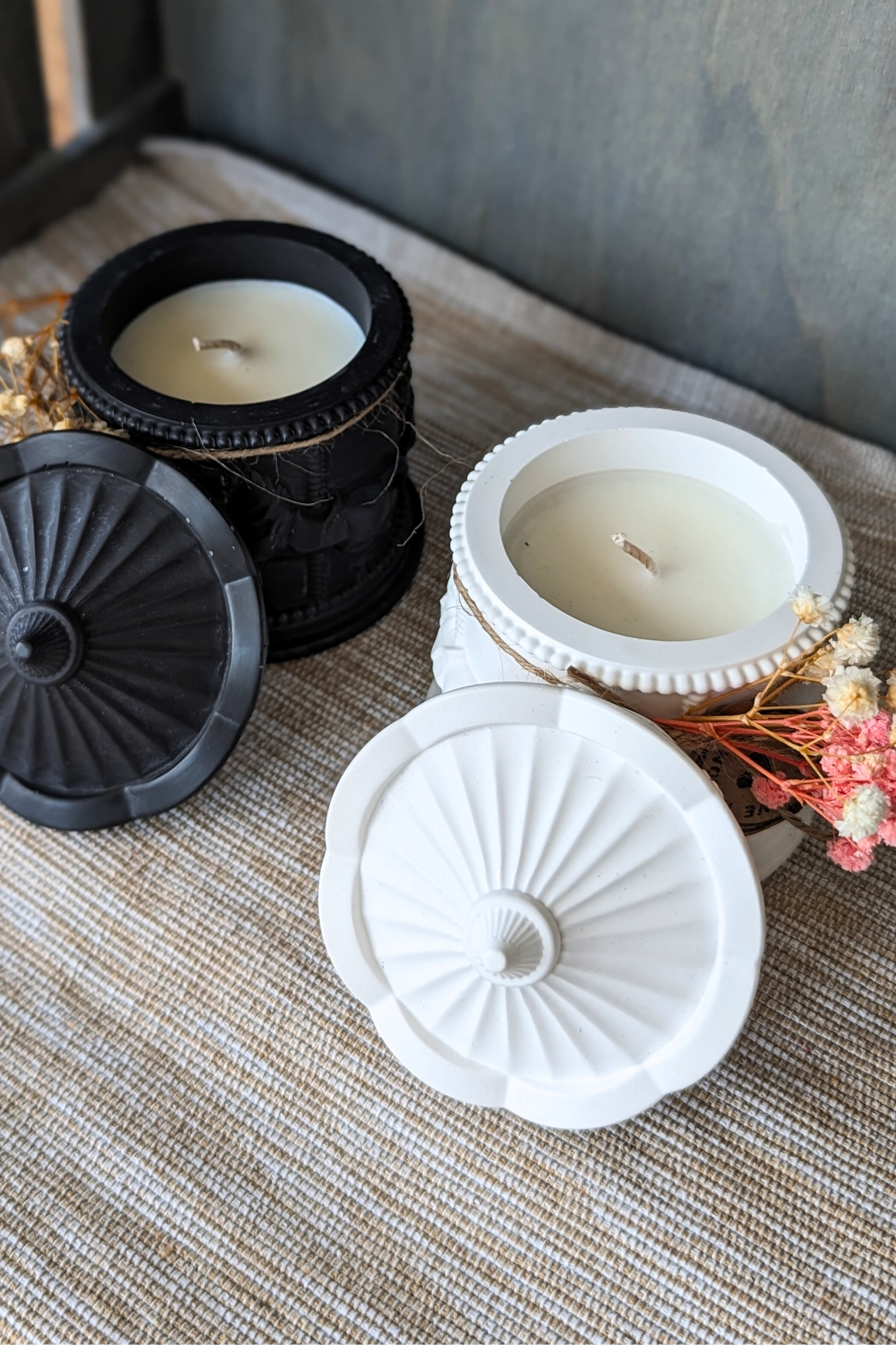 Meine Kerzen werden in werden in liebevoller Handarbeit in Gefäße aus einem Gießpulver der Firma Keracraft für Dich gegossen, geschliffen und versiegelt. Für den Schutz der Oberfläche deiner Möbel ist der Boden des Kerzenhalters aus Kork.